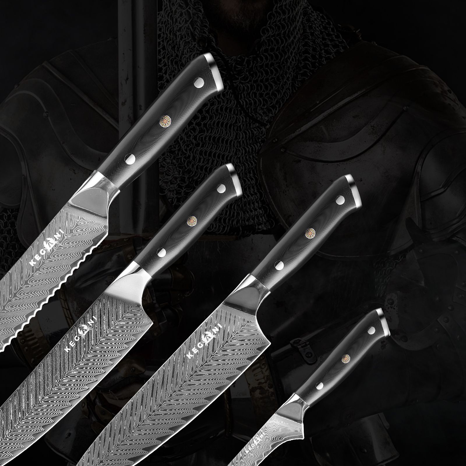 • PERFECT VG-10 STEEL CORE - The chef's knife is made of 67 layers Damascus steel that uses the VG-10 steel core. Our Japanese chef's knife has undergone meticulous precision quenching and vacuum cold nitrogen treatment to enhance its corrosion resistance, rust prevention, and toughness. Boasting a remarkable Rockwell hardness of 60±2HRC, this super sharp knife retains its sharpness, even after prolonged use.